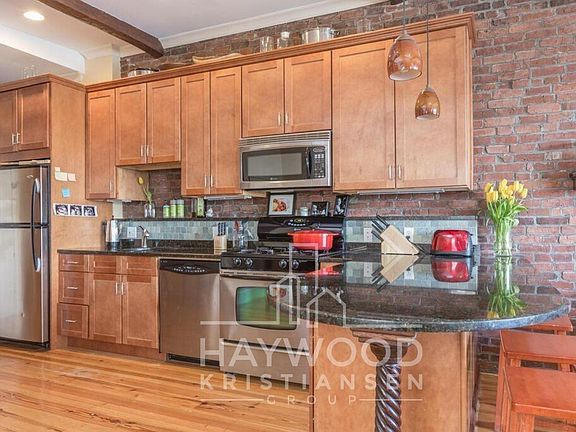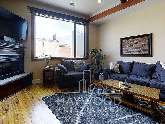 AVAILABLE 9/1 Impressive loft-style home with 14' high ceilings, exposed beams, beautiful moldings, wide plank floors, gas fireplace, and exposed brick throughout. Kitchen features stainless steel modern appliances, granite countertops, breakfast bar and open concept living space. The spacious master bedroom and en suite bath include options for extra storage and organization. The smaller second bedroom makes for a great nursery or study. The unit also offers a private, walk-out deck and interior walk-up access to the common roof deck, central air, and in-unit washer/dryer. First month, security deposit and broker fee due upon lease signing. Exclusively offered by Haywood Kristiansen Group