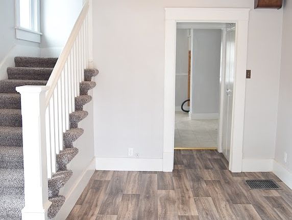 Wonderful updated home for rent to own purchase will have a new roof and has all new carpet and flooring updated bathrooms and granite countertops. Fresh paint inside and tile kitchen and bathroom floors. Large shop and back deck and nice sized fenced yard. Large 3 bedrooms and bath and laundry upstairs as well as tons of attic space for storage. A must see call for a showing 1200 a month plus utilities