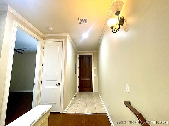 A luxurious apartment situated in downtown Jenks, right across from Jenks High School. The apartment has 2 bedrooms, 2 bathrooms, and an attached two-car garage. Additionally, the commercial unit downstairs is available, and can be converted into a 3-bedroom, 2.5-bath unit. This commercial unit has its own separate address and is perfect for a live/work setup. Convenience: Located in Jenks, this apartment is only two blocks away from Main Street in downtown Jenks. It offers easy access to Creek Turnpike, Riverside Parkway, as well as various dining and shopping venues. Amenities: Kitchen: Features granite countertops, hardwood cabinets, and state-of-the-art stainless-steel appliances including a range with four burners and oven, refrigerator, dishwasher, and microwave. Bedrooms: Each bedroom comes with a ceiling fan and private bathroom access through French doors. The bathrooms have tiled floors, granite counters, and high-end fixtures. Master Suite: Includes a walk-in closet, twin sinks, and glass French doors that open onto a private patio. Additional: An in-unit washer and dryer are included. There is also an attached two-car garage. that open onto a private patio. Additional: An in-unit washer and dryer are included. There is also an attached two-car garage.