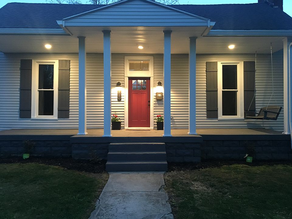 - EXTERIOR FEATURES: Landscaped, Trees, Concrete Walks, Porch, Patio, Asphalt Drive