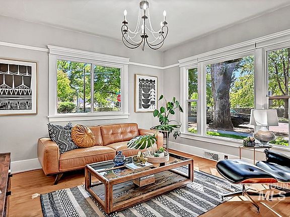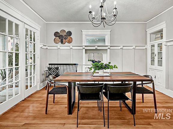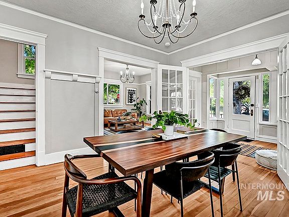 Charming architecture and unbeatable placement present an opportunity for exceptional urban living in one of Boise's most walkable neighborhoods! Perfectly positioned where downtown and the historic East End meet, within blocks to St Luke's, scenic foothill trails, and inviting neighborhood parks and schools, this residence's Walkscore® and Bikescore® of 75 and 89 respectively make its location an East End standout. Sitting just outside the boundary of the East End Historic District, this home provides an exciting opportunity to modernize or enjoy the historic appeal as is. Era-defined character permeates the interior with coffered ceilings, ornate built-in shelving, classic crown molding and picture railings, and elegant light fixtures. Large windows bathe the rooms in stunning tree-filtered light, while hardwood floors seamlessly connect the living spaces on the main level.