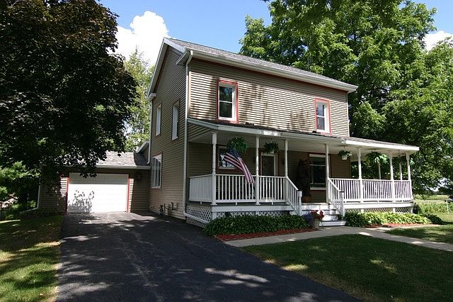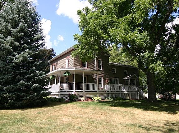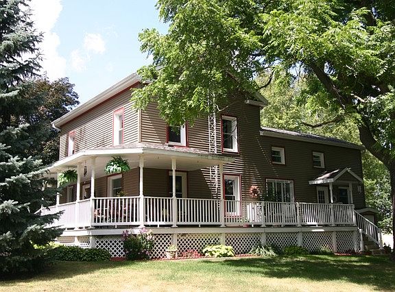 This late 1800''s home has all the character, charm and craftsmanship of a bygone era with all the recent updates and remodeling to suit comtemporary tastes and lifestyle! A wrap around porch was added in 2013. There is also a lovely, private deck on the back of the house. Original woodwork, leaded glass windows and staircase greet you upon entering the front door. An open living room w/library and a large, separate dining room has ample space to host many a family gathering. There is also a full bath and large mud room on the main level. This beautiful 2 story, 3 BR home also features a fabulous newly remodeled kitchen with granite counters, SS appliances and quality cabinetry. The second floor features a master bedroom w/walk-thru nursery or office, newly remodeled full bath and 2 other bedrooms, all of which have lovely HW floors. This charming home sits on just under an acre with a 1 car attached garage and a separate 3 car garage. Electric FP in LR negotiable. HSA warranty.