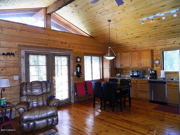 Turnkey home in Payson tucked away in the private forested grounds of this well cared for second home property. Wood floors, walls and ceiling create a warm feeling as you enter from the stone porch. Open living area with vaulted ceiling is open to a nicely finished kitchen with stainless steel appliances and granite counters. Enjoy your master bedroom with french doors leading to an expansive deck and the backyard Garden of Eden views. One of the nicest maintained homes in the Payson area for under $150K. Furniture available by separate agreement. Owner May Carry.