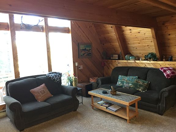 3 bedroom/1 bath Cabin has been upgraded in kitchen, bath, doors and flooring. Basement is a walk-out with french doors and recreational area and enclosed heated laundry room with plenty of storage. Detached garage is 12' x 24' with roll up & a side door. Located in Meadow View Heights on a 1/2 acre lot with municipal water & electric. Vaulted ceiling in living room and tongue/groove wood interior. Storm doors on both front & back doors, front deck includes BBQ gril and built-in seating. All appliances, wood stove and services for Direct TV, telephone & internet installed/in use. Lots of parking with circular driveway. Fire Ring in back of property and risers installed for septic tank that was last pumped in 2017. Income property potential for vacation rental. TrailheadCabin@gmail.com