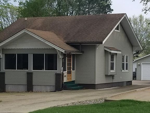 NEW LAMINATE JUST INSTALLED IN THE LIVING ROOM AND DINING ROOMS! Adorable curb appeal, large deck in back yard. Great 2-car garage with cable ran to it for TV, and has finished walls and ceiling with poured floor. Refrigerator in garage stays. Ample concrete parking in the front & rear of house for big family get-togethers! Enclosed screened front porch is great for summer nights. 1st floor bathroom all new in Jan. 2019, including fixtures & flooring. New shingles on house and garage in 2001, new siding, windows, screens and wiring in garage and 1st floor of house in 2008. Kitchen has new vinyl & newer appliances. Park-like landscaping in front adds to curb appeal with powerlines underground. Full bath on 2nd floor needs updated. Upstairs bedroom walls could be expanded to make a master suite. Furnace new in 2007. Dishwasher in garage being left for kitchen. Close to shopping & wonderful park. Being sold as is. MOTIVATED SELLER.