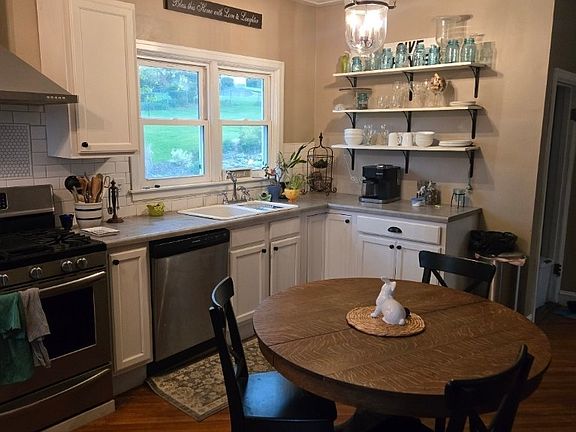 This 2 story home was built in 1914. It sits on a double lot (half acre) with a 2 stall detached garage. The garage has a walk up loft for additional storage. Main floor includes the living room with a gas fireplace, stacked laundry in the main bathroom and a bonus room that was used as an office. Kitchen has original floors and stainless appliances. All appliances, including washer and dryer, are staying. Includes enclosed front porch which has been insulated. Second floor includes 4 bedrooms and a 4 piece bathroom. Tons of storage in the walk up attic. New carpet in 2022 and new water heater 2024. Roof has full tear off with new sheathing and shingles in 2012.