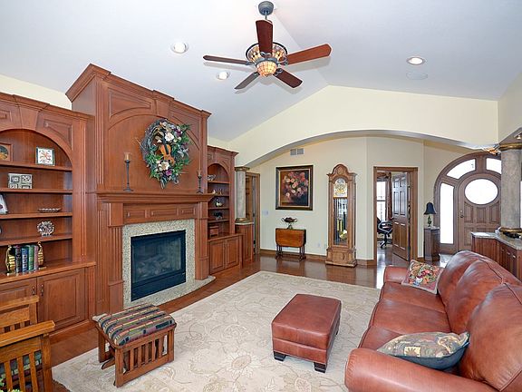 Luxury abounds with gorgeous custom woodwork and built-in cabinetry, gleaming hardwood floors, exquisite stained glass light fixtures throughout, gourmet kitchen, main floor master suite, 3-car heated garage, and much more.