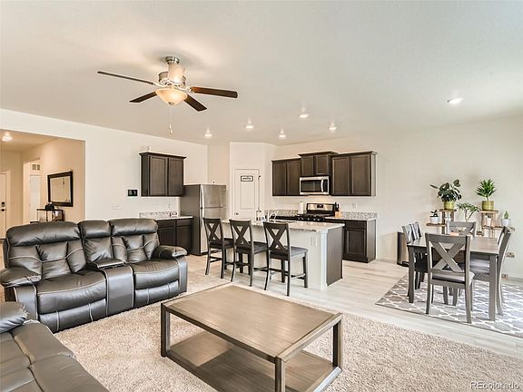 Exceptional ranch-style home in Keenesburg! Step inside this one-floor home and experience the perfect blend of modern comfort and timeless design. A long and inviting foyer sets the stage for the seamless flow of this beautiful home. The open concept living room and kitchen create an atmosphere of togetherness, ideal for entertaining guests or spending quality time with loved ones. The kitchen boasts stainless steel appliances, including a sleek island, a convenient pantry for storage, and gorgeous granite countertops that add elegance to the space. Adjacent to the kitchen, eat-in table space offers a charming spot for casual dining, while large windows bathe the room in natural light and provide scenic views of the backyard. Step outside through the glass doors and discover a spacious fenced yard, perfect for outdoor activities and gatherings. A delightful patio area is prefect to dine al fresco or unwind with a cup of coffee. Privacy and tranquility define the primary bedroom with an attached ensuite bathroom that offers a soaking tub, step-in shower and a generously sized walk-in closet. Towards the front of the home, you'll find two additional bedrooms separated by a full bathroom and linen closet. Welcome home!