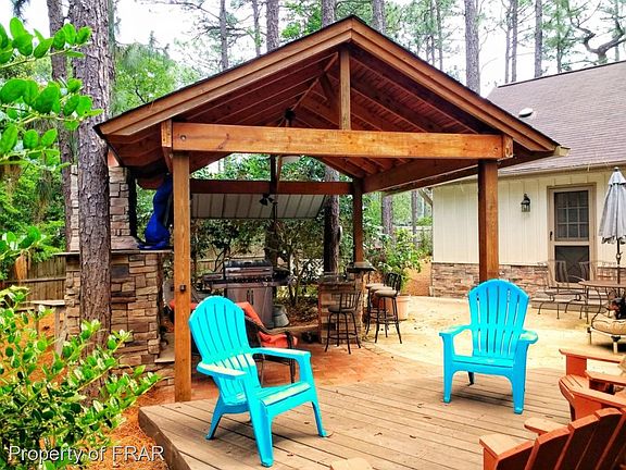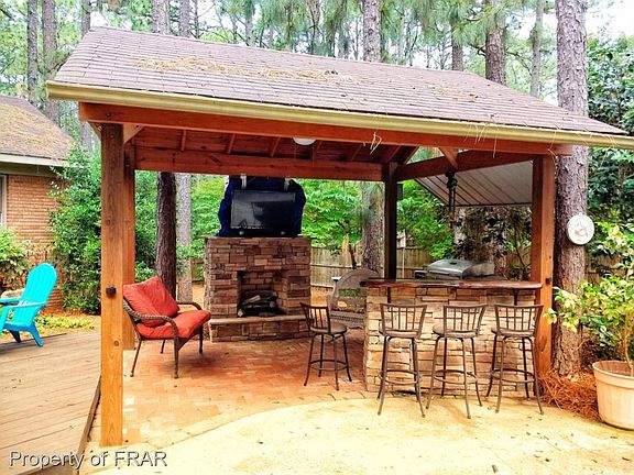 - On a corner lot, this home is fantastic! Fenced for privacy. Excellent outdoor entertaining areas! Large covered living area. Stacked stone gas log fireplace, TV, Live Edge Bar, sink, fridge & gas grill. Listen to the fountain that flows into the pond next to it. Concrete patio with plenty of entertaining area and a wood deck complete the fun! The home has 3 Master Bedrooms! Split floor plan. Many custom & period details, too many to list. Oversized 2 car garage, custom shed with electricity.