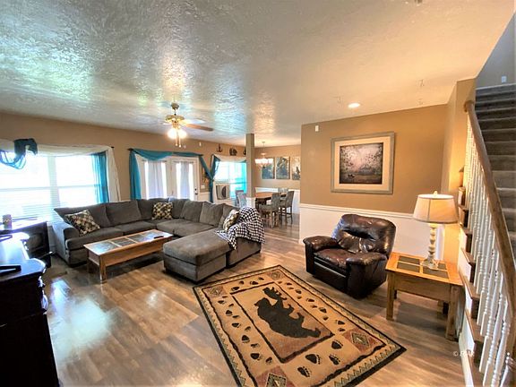 One-of-a-kind custom home. This beautiful 4-bedroom, 3 bath home is located in Spring Creek on the golf course fairway. A quiet serene location. The master bedroom, great room with full bathroom, and laundry room are on the main level. The kitchen features a double oven, tile countertops, an electric stovetop, and a walk-in pantry. The home has a dining room and a formal dining room. The laundry room has a sink. The large living room has a pellet stove. The master bedroom is located on the main level of the home and has double sinks and two walk-in closets. The upper level contains 3 bedrooms and a full bath. The home has new light fixtures and hot water circulating heat. Hurry and take a look at this great home. and laundry room on the main level.