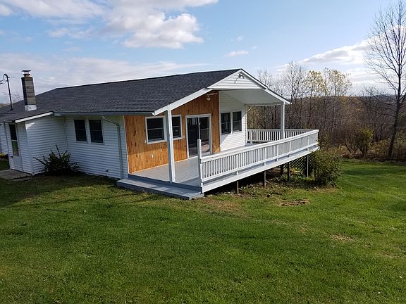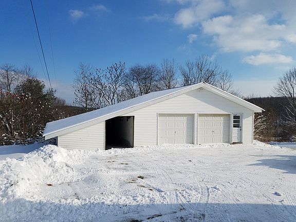 Custom built raised ranch settled in a private country setting. Walk in to the open floor plan on the main level. Offering spacious kitchen featuring custom cabinets with room for designated dining space. Open to large family living room with sliding glass door access to lovely wrap around deck. Walk out basement offers main room, sauna, and tons of room for storage. Additional room with water hook ups for personal business such as a salon or massage therapy. Electric Heat with back up wood stove. Separate over-sized two car garage with an additional side bay.