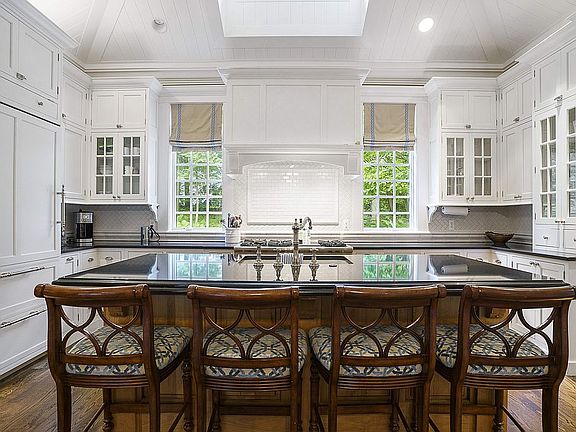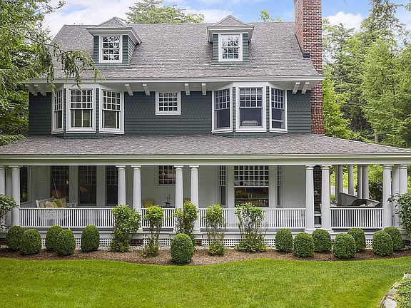 This gorgeous colonial home with luxury cottage finishes is located in the coveted Glenn Woods Association of Harbor Springs. The spacious 3,800 finished square feet comfortably hosts an open concept living area plus five bedrooms and seven bathrooms. The gourmet kitchen showcases all of the latest features including a commercial grade range, subway tiled backsplash, contrasting island and wall cabinetry, and an integrated refrigerator. A dormer window in the vaulted ceiling brings in an abundance of natural light. The kitchen flows into the dining area and great room with a large gas fireplace creating an ideal environment for gatherings. Enjoy main level living with the master bedroom, private den, and laundry room also all located on the 1st floor. The beautiful, open staircase leads to the 2nd story landing and three bedrooms, each with a luxurious en suite bath. A separate 2nd story is privately set at the opposite end of the house designed for guest quarters or an in-law suite. The whole house design is brought together with fine woodwork finishes of planked ceilings, crown molding, and other detailed trim along with hardwood floors and high quality, pristine carpets. The clean, unfinished basement and 3 car garage offer an extensive amount of storage space! Plus, take advantage of the outdoor space as well with the charming wrap-around covered porch, back patio, and large front yard. Just a half mile to the public beach and downtown shopping and dining! Sold mostly furnished!