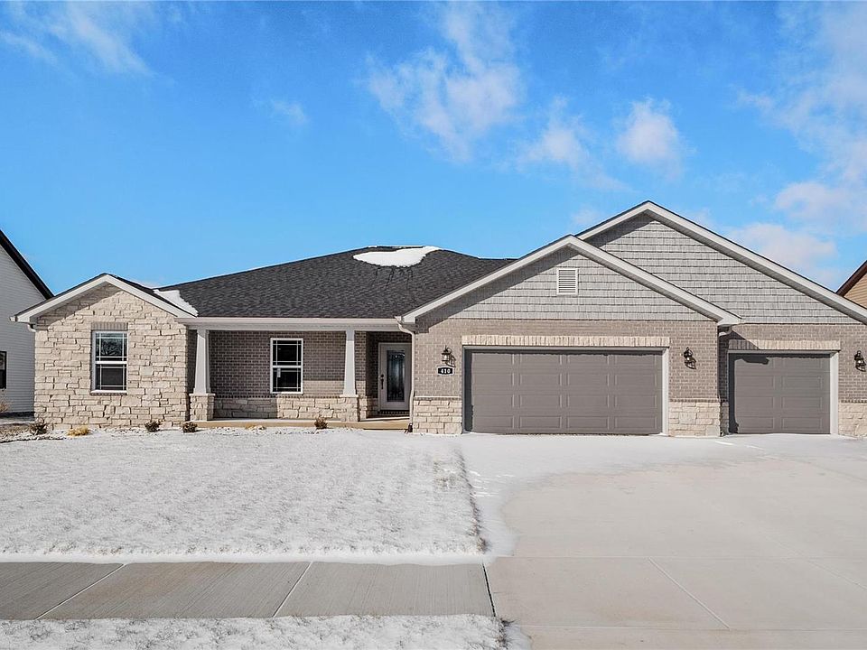 The spacious Kingston Floorplan is completed and ready for it's new owner! Inside you'll find a foyer entry leading to the open family room to the spacious kitchen with an island, breakfast bar and vaulted ceilings. The split bedroom concept offers two guest bedrooms sharing a full bath and the primary bedroom on the other side of the home with a luxury primary bath with separate shower and tub and walk in closet. The primary bedroom is also near the laundry room which is off of the three car garage. The finished basement offers a spacious living room, 3/4 bath, and bedroom with plenty of storage room to spare! Enjoy the yard from the covered back patio or front covered porch. The neighborhood clubhouse and community pool has a stunning view of the city skyline and the Arch. Shiloh and O'Fallon high schools and just minutes to Scott Air Force Base! Agent owned.
