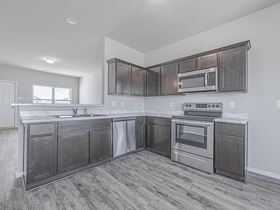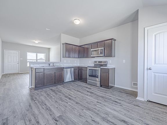 This home is a split floorplan with an open living room and kitchen area that is great for entertaining. Home to be completed in February.
