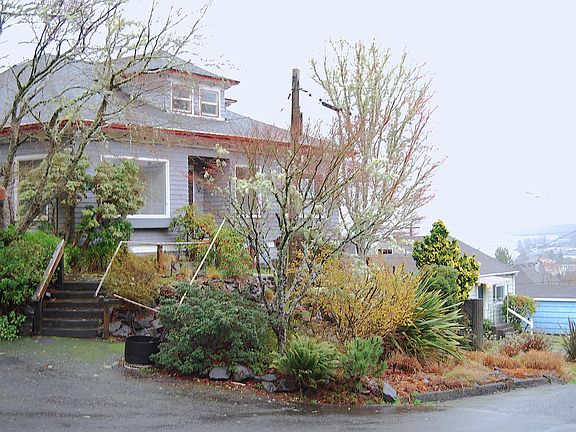 This 1908 Craftsman home is in the Hobson-Flavel Historic District, with excellent views of the Columbia River, Tongue Point, the city of Astoria as well as the mountains on the Washington side of the river. The home has 4 bedrooms, 2 full baths, a formal dining room and fireplace, restored original wood floors, and a view deck. It has a detached two car garage, a greenhouse, and an end of the street location bordering city forest.