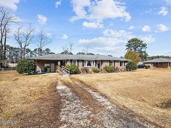 Brick ranch home located on .49 acre lot located on desirable, dead-end road in James City. No city taxes and convenient to downtown historic district, shopping, restaurants, airport and short drive to MCAS Cherry Point. This home offers a new family an amazing opportunity to ''make it their own''. Great size living room area with dining area combined. Kitchen offers original abundant cabinetry and great working space with built in breakfast bar w/extra cabinets. Built in Microwave and Dishwasher no longer work. Large Master bedroom suite is a wonderful retreat with large private bath, walk in closet and incredible built in bookshelves and storage. Large Master Bath space includes a tub/shower combo, hot tub and a sauna (seller makes no representation to their condition, neither have been used in a while). Great built ins for linen/supplies storage. Bedroom two offers a private door into the hall bath from the bedroom. Bedroom three has its own private full bath. Almost 1/2 acre lot offers an in ground pool, fenced in backyard, concrete pad great for a basketball court and room to expand. Carport with two utility rooms. Washer/Dryer set and the second refrigerator convey with home. Waiting on new owners to ''make it their own''!!!