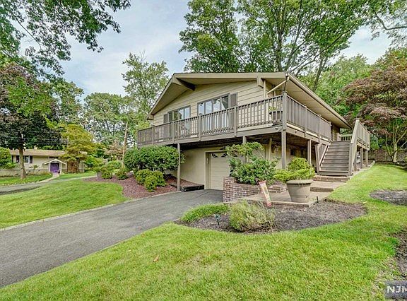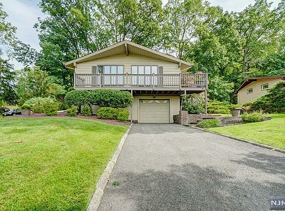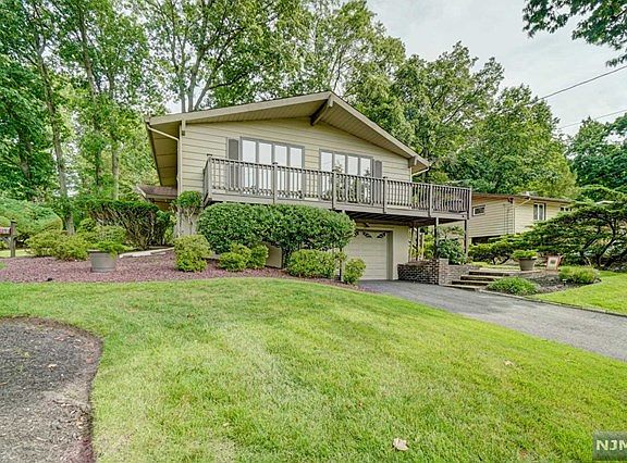 Well Maintained Modern Style Bi-Level with tons of natural light, cathedral ceiling, wall of windows, 5 skylight, open flow, wrap around deck. Kitchen with granite island is fully open to the living room and dining room with no walls, your art is the gorgeous sunset views through the wall of windows. Three bedrooms were combined into two to create an expanded master bedrooms with fireplace, two closets and certainly room for a walk in closet if you desire. A deck accessed from the kitchen wraps around the house reminiscent of mountain homes, making you feel like you are on vacation. Downstairs is a large family room with fireplace, laundry room, garage and storage. A lovely patio and garden out back. Other amenities include central air and lawn sprinklers. Great location and excellent schools. Approx 22 miles to GWB NYC.