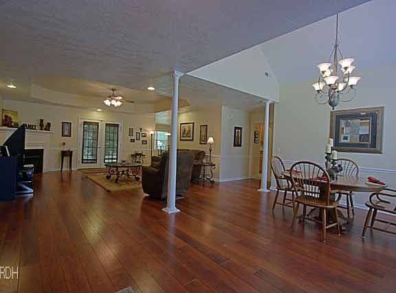 Reduced-Lakewood Links backed to the woods for privacy & in a culdesac.A split 3 BR,3.5 baths(each bedroom w/full bath).Kitchen has solid surface counters,recessed sink,breakfast bar,stainless appliances w/refrigerator,ceramic tile flooring & door to screen porch.Beautiful laminated hardwood in GRTRM,foyer & formal dining.Knock down ceilings,well,sprinkler & 2.5 garage for golf cart,bikes or mower