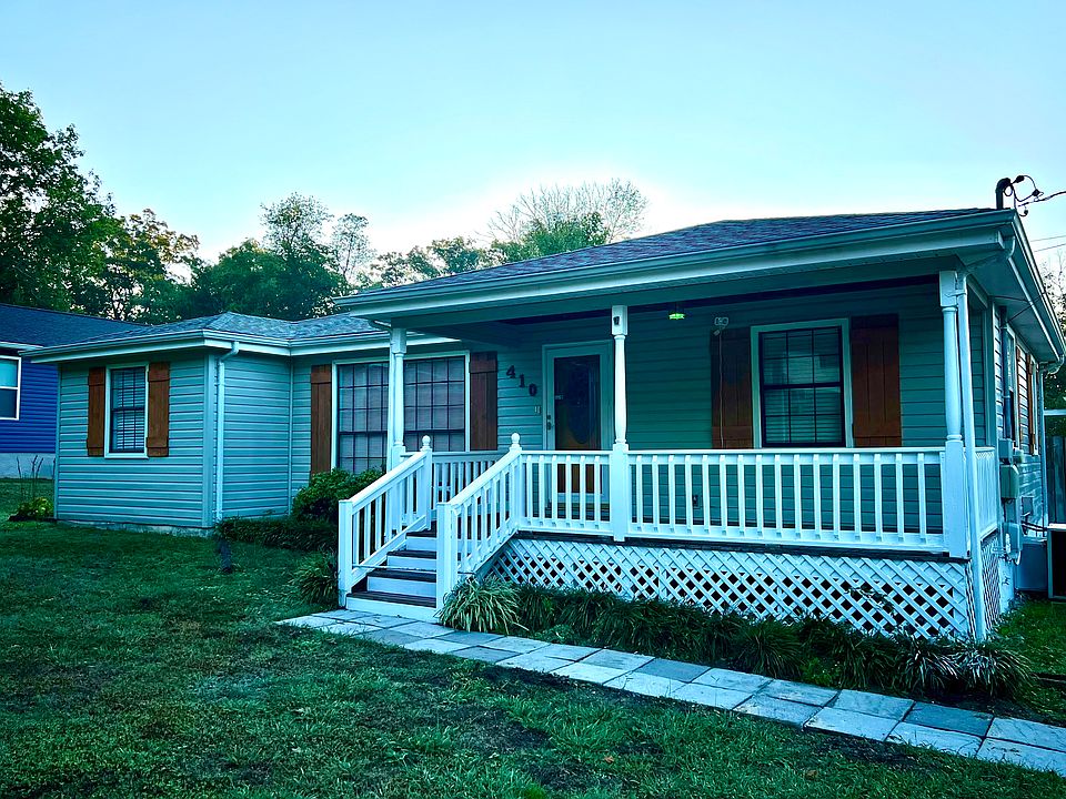 The exterior features a manageable yard and 6'X8' storage building. There is a long, level concrete driveway for ample parking.