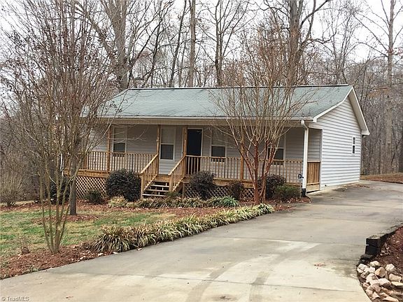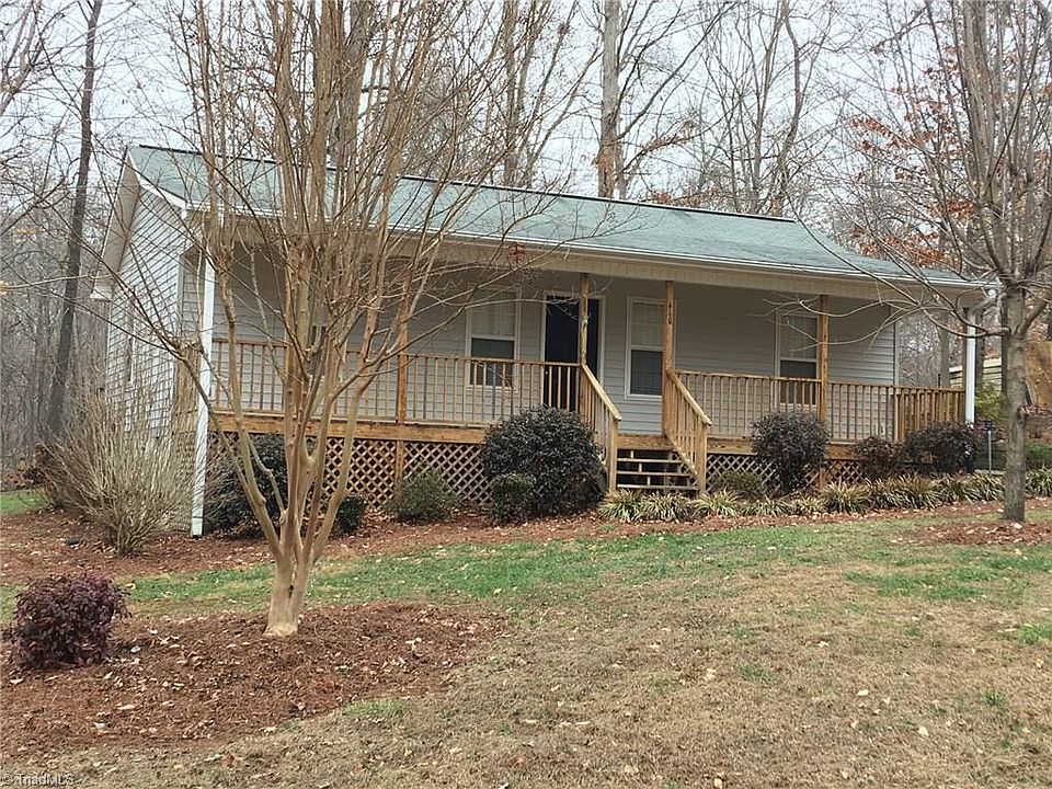 Darling updated and maintained lake cottage on approx 2 acres across from High Rock offers lots of comfort and convenience for a lake lifestyle! Low maintenance new laminate wood flooring, open LR & dining w/ kitchen, neutral color scheme thru out. 38x6 covered front porch, prof. landscaped yard, huge back deck w/ lake view from porch & deck. 4 bay metal garage/shed is 25x40 with approx 8 1/2 ft door opening height, elec. wiring, gravel flr. to store all your lake toys. All appliances stay.