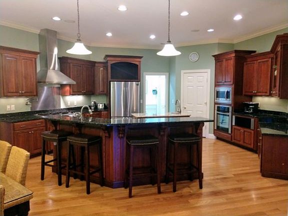 Beautiful custom built home with split floor plan. Main floor has huge master suite and 3 bedrooms also living room, dining room and open concept family room kitchen which has granite counter tops, stainless appliances and hardwood floors. Large sun room and deck provide peaceful nature view. Full finished walk-out basement has kitchen living room, theater room, bedroom, bathroom and exercise room. One turn out of subdivision takes you to Fishing Creek boat ramp and recreation area.