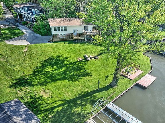 No matter the season....the sound of water or the view of a glass-like lake surface always soothes the soul. You can have this feeling every day! Sitting in the Kit! In the Living Rm! In the Family Rm! On the 3 Decks!! Yes there are 3 Decks, 2 at house level, one near the shore PLUS Walkout Patio! Lake Access with dock just steps from the deck near the shore. Floor plan of Kit and Living Rm gives an open feel add the wrap around windows in the Living Rm definitely gives you a "Retreat" and "Vacation" vibe. Roof new '23, Updated Vinyl Windows, White trim, Neutral Interior Colors, 2 Car Garage add to the turn-key condition! **Please note Seller does not currently have Homestead Exemption on Taxes**