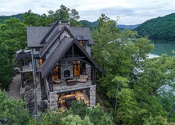 AUCTION: New Auction Price $7.85 Million. Without Reserve. Live Auction June 24th-27th. Open Daily by Appt. Come home to a luxurious lakefront sanctuary on your very own peninsula surrounded by majestic forest and peaceful waters. Your finely appointed estate at 410 Lakewood Drive blends modern amenities with rustic charm. Rich hardwoods and artisan details perfectly frame walls of glass that invite the spectacular vistas inside. You'll want to live outdoors in your choice of patios. Guests will feel pampered with a private space all their own. Spend your days boating, fishing, or swimming in the calm, clear lake waters off your dock. A secluded setting and a truly spectacular chef's kitchen complete this picture-perfect family retreat. Call for details.