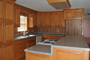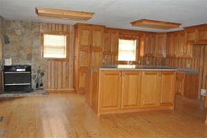 Your own hilltop cabin with log siding! Plus a shop and acreage. Plus West Jones schools. Open floor plan. Wow! Sit on your front porch and enjoy a cup of coffee everyday! 3 bedrooms, 2 baths, and a huge utility room. Mast bedroom opens to the front porch. Central heat and air, but has wood-burning stove if desired.