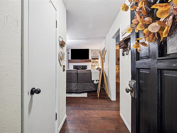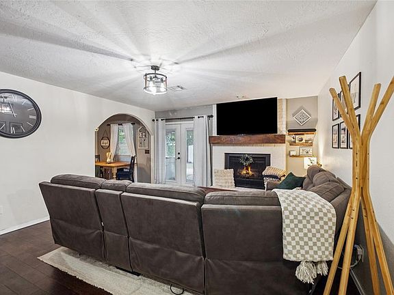 Living & dining feature fresh paint, new fixtures & custom shelves. Kitchen boasts granite, barn-door tile & new stainless appliances. Owner’s suite has a newly renovated walk-in shower. Backyard retreat offers a massive, covered patio w/ cedar pillars, updated electrical, privacy fence (2023) & hot tub w/ reasonable offer. Major updates: HVAC ’23, roof ’21, paint, fixtures & 1-yr home warranty.