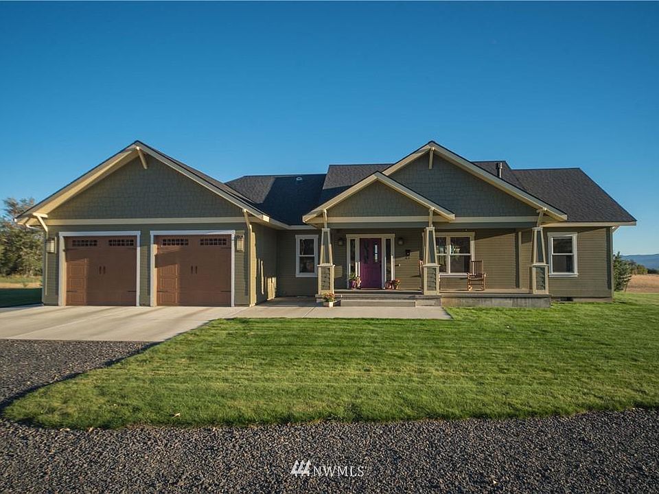 Quality home on private 8+ acres w/views! Hardwood & tile throughout most of home, quality lighting fixtures & classic white trim. Gr. rm w/9ft ceilings, stacked stone FP w/gas insert & custom cabinets. Kitchen w/quartz counters, buttercream cabinets w/chocolate glaze & glass inserts, SS appl. Elegant Master suite w/2walk-in closets, granite counters on dark cabinets, lg glass bk shower+modern claw ft tub. GEO-therm Efficient heat. Coverd patios, spr sys. 32X40 shop w-3/4 bath, wd stove & loft.