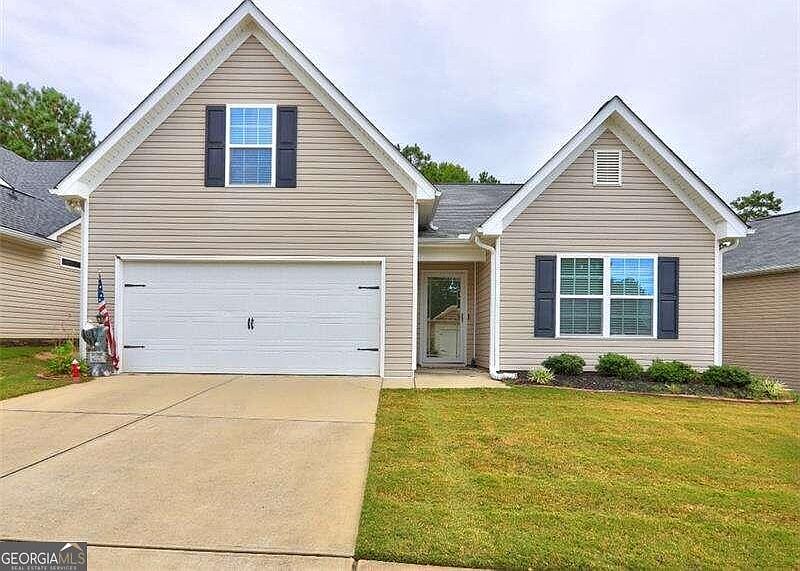 This spotless home is ready for you! Great ranch with open floor plan! Granite Kitchen island overlooks the large family room. Plenty of counter space!! New gleaming laminate flooring in the hallway and family room. Owners suite has attached bath with large shower and soaking tub. Walk-in closet also attaches to the laundry room which has new white cabinets. Two secondary bedrooms and full bath meet you as you enter the home. Upstairs is a large flex space which could be an extra bedroom, office, etc. The newly stained fenced backyard is ready for your furry friends and you! The partially covered, extended decorative patio is beautiful! New roof in 2023, new AC installed in 2019. Too many upgrades to list!! Great location! Close to shopping and restaurants. Also VERY close to Holly Spings Town Center, where amazing things are about to happen!