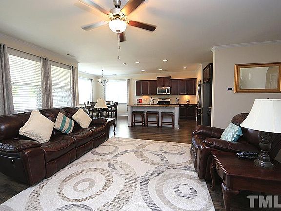 Open floor plan w/1st floor master suite. Separate office/flex room. Kitchen has SS appliances, granite counters, gas stove, huge walk-in pantry, island w/seating. Sunny breakfast room. 2 additional bedrooms & spacious loft upstairs. Relax on back porch overlooking large patio & fenced back yard. Great neighborhood connects to Knightdale Station Park. Shopping, restaurants, YMCA pool and Thales Academy all nearby. Convenient to I540, 440, downtown Raleigh & RTP.