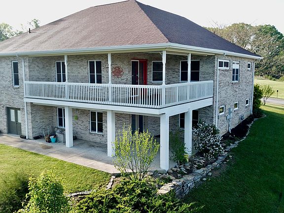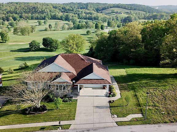 Custom built brick ranch with amazing golf course view. Loads of character and unique features. Wood floors throughout 1st. Rich poplar doors and trim. Main kitchen has maple cabinets, island, gas stove, large pantry and eat-in area plus formal dining area. Living room features gas fireplace + that golf view. walks out to 430 SF covered deck with lighting and sun shades. Home office w/ glass French doors. Primary suite has walk-in closet, gas fireplace and ensuite bath featuring jetted tub & walk-in tile shower. 1st floor laundry room. Lower lever features a 2nd kitchen and living room (also gas fireplace) and walks out to stamped covered patio. Full bath . A complete living space with separate entrance, ideal for those seeking inlaw suite or similar need. Large workshop in lower level w/ 6' door that will accommodate mowers, atv's, etc. HVAC in great condition and maintained regularly. Whole house water softener/purifier included. Oversized 2 car garage with extended overhang - such a great feature. Quiet cul-de-sac with custom homes that compliment each other. This property is a MUST SEE, both for the house, the location and view! Move-in ready.