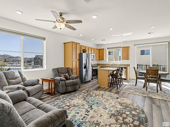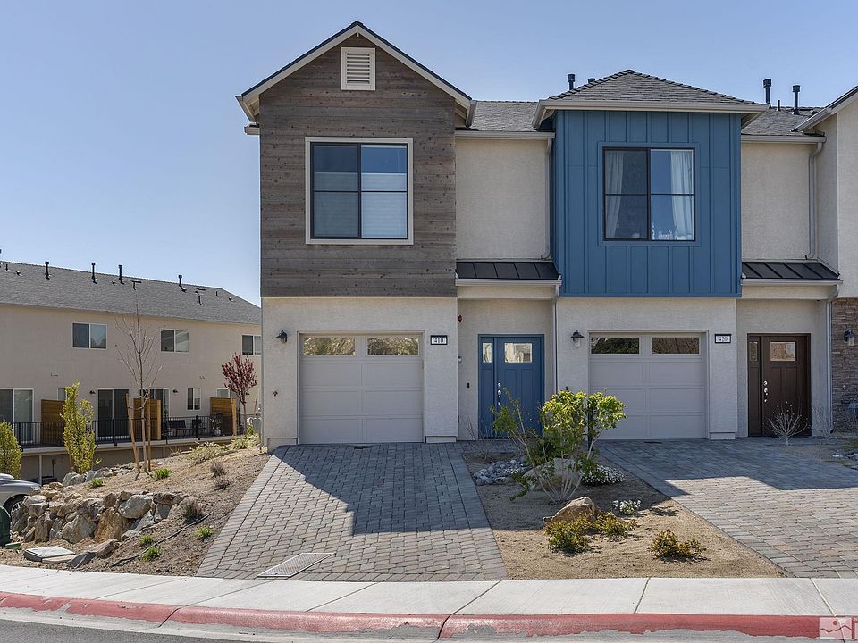 Welcome to Rancho San Rafael Townhomes! Just minutes from UNR and Downtown Reno, this premium, end unit is just 2 years old and move-in ready. 410 Logan Jacob Lane features a great room design, 2 en-suite bedrooms plus an additional half bathroom throughout 1372 square feet with a 1-car garage. Offered fully furnished, youll love the low-maintenance style of this home and community! Main floor features include: light and bright great room with ceiling fan; kitchen with granite countertops, stainless steel appliances and an island with breakfast bar; dining area with a slider to the back patio; and a half bathroom. Upper level features include: large primary bedroom; primary bathroom with oversized shower stall, double sinks, linen closet and a walk-in closet; en-suite secondary bedroom with 2 closets and a spacious bathroom with tub/shower combo and a linen closet; and a laundry closet in the hallway with an additional linen closet. Garage features include: epoxy floors; work bench; and direct access to the interior. Bonus features include: premium, end unit adjacent to common area; LVP flooring throughout the main level; paver driveway; paver patio overlooking the common area; upgraded top-down bottom-up accordion blinds throughout; and all furnishings and appliances (entertainment center under the tv excluded).