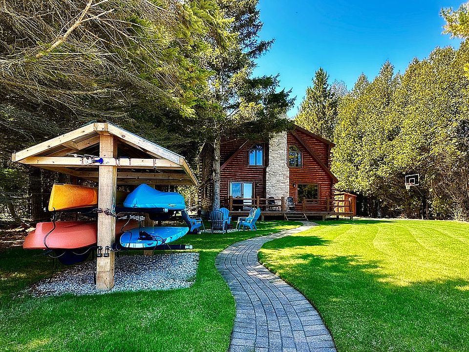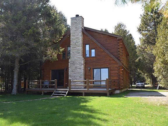 Charming log cabin on the shores of Lake Michigan in Door County. Great location near the end of Lower LaSalle Rd and walking distance from Lower LaSalle County Park. 100 feet of shoreline with tree lined lot, basketball court, and large lakeside deck. Enter through a screened porch, main floor bedroom with two very large bedrooms on the second level. Wood burning fireplace for those cool spring and fall nights. The living area is open with ample space for entertaining. Loads of privacy in a quiet neighborhood.