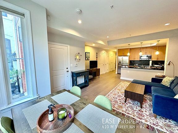 Step into unit #2 at 410 M Street - a stunning, fully furnished 2 bed/2 bath occupying the entire main level of a boutique five unit condo building in the heart of Mount Vernon Square. Revel in the high-end finishes, bask in abundant sunlight, and step out on your private balcony to escape the indoors. This is definitely a must-see! *Please note: this unit is being rented fully furnished with the items shown in the photos. Renting it unfurnished or partially furnished is not an option.* Apartment Features: Fully furnished with everything that is shown in the photos Beautiful hardwood flooring throughout Bright and open main living area with exposed brick and an oversized bay window Dining table that can seat 6 comfortably Luxury kitchen with granite countertops, bar seating and stainless steel appliances Hallway leads to the good sized first bedroom with separate rear entrance First full bathroom in hallway Spacious primary bedroom at back of apartment with an ensuite bathroom Private balcony off of primary bedroom, perfect for escaping the indoors! Plenty of extra storage space throughout Washer/dryer in unit Parking: Street parking. Utilities: Tenants are responsible for electric. Water and gas are included in rent. Lease Terms: Available immediately. Lease term of 6-12 months would be accepted. Application fee is $35 and includes a credit check. Security deposit equal to one month's rent due upon lease signing. Pets considered on a case-by-case basis pending approval by Owner. This unit is being rented fully furnished only, with the items shown in the photos. Renting it unfurnished or partially furnished is not an option Location: M Street is a quiet, one-way street in Mt Vernon Square lined with beautiful Victorian-era architecture. Just two blocks from the Mt Vernon Square/Convention Center Metro Station. A quick walk to Safeway and neighborhood favorites such as Unconventional Diner, Bartaco, The Dabney, Busboys & Poets, A Baked Joint, and too many more to list. Great location for Virginia commuters too with very easy access to 395.