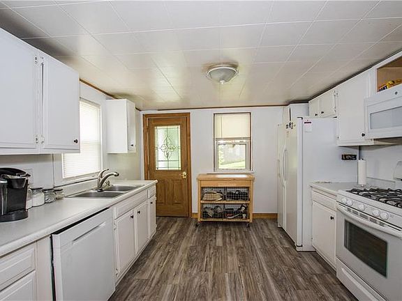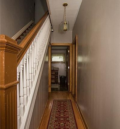 WELCOME TO 410 Main Street! So much space! 4 bedrooms! 2 car garage! You'll love the character throughout...original wood flooring in dining room, hallway & entry...the crown molding, the bay window in the dining room, original hardwood staircase, & so much more! The galley kitchen w/plenty of cabinet space is white & bright, freshly painted, w/ brand new flooring (all appliances included). The updated & very large full bath on the main level is conveniently located next to the main floor master bed (the 15x14 bed makes this home one level living too). The main floor is complete w/a large living room w/brick fireplace. Upstairs-the exposed staircase will take you to 3 large beds (two are 15x14 & one is 15x12). The lower level is painted and clean (which is also home to the tankless hot water tank and the laundry area). Two covered porches for outdoor living! Two minutes to the highway*schools*churches*& more. Walking distance to just as much! All this and more in the Bentworth Schools.