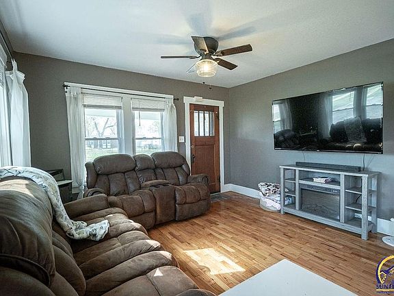 Embrace the allure of small-town living in this charming Carbondale home, only a short drive from the amenities of Topeka. Step inside to a welcoming open living area, featuring gleaming refinished hardwood floors and abundant natural light. The main floor features 2 bedrooms and 1 bathroom, while the basement boasts two additional (non-conforming) bedrooms and extra living space. With a newer roof and updated windows, this home also includes main floor laundry and multiple outdoor entertaining areas. And let's not overlook the 20x30 outbuilding, perfect as a garage or workshop—the choice is yours! Don't miss the chance to see this unique property for yourself!