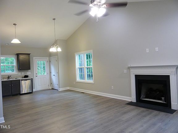 Fantastic and affordable new construction three-bedroom / two-full bathroom ranch home on a cul de sac in Clayton. Big primary bedroom with walk-in closet and upgraded bath, including cultured-marble dual-vanity sink. Two spacious secondary bedrooms share a full bathroom. Beautiful kitchen with tons of cabinets, a pantry, and lots of granite countertop space. Open living area with fireplace and vaulted ceiling. Loads of natural light all over. Separate laundry room. Gorgeous flooring. Covered front porch. Backyard deck. All on .22 of an acre in downtown Clayton with no HOA. (Photos of interior are of a different build of the same model by the same builder; colors and some other stylistic choices may be different with this build.)