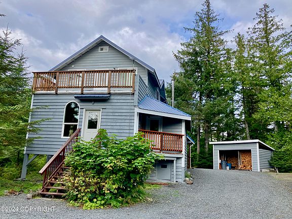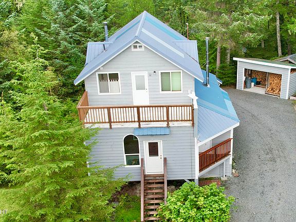 You will fall in love with this charming 1 acre property! With a 1600sf home, a garage/ boat port, a shop, cabin, woodshed, chicken coop & a pond, this delightful turnkey property offers tons of value! Beautifully secluded & private at the end of the road, it feels lost in the woods & yet town & the state dock are just minutes away. Life is easy here with road access & power but no property tax!The home measures 30' x 24' and comes to 1600sf of living space, with an open plan large bedroom area, 1 bathroom & lots more. The lower level is beautiful with a spacious living room, a large kitchen & dining area. Heated by wood & propane the home feels cozy & very comfortable as well as practical. The lower level also has a pantry, a small laundry area, another old style cook/wood stove in mint condition and 3 covered decks. These decks encompass the entry into the home, a lovely BBQ area, & a small sun deck leading to an unfinished sun room that could be another bedroom, bathroom, office, or whatever you need. Upstairs is a beautiful, open plan room with a sitting area, an office space, an upper deck, the bathroom & a small, open loft. This is is a charming space, with gables and vaulted rooflines & windows all around. This room could sleep many, or perhaps even be divided into smaller rooms if more bedrooms were preferred. It would also be possible to extend the home to one side if desired. Outside is a D-Log cabin, with one room, tucked into the trees near the pond for your guests. Enjoy campfires right in front. And there is still so much more. A 32' x 32' garage offers an enclosed garage on one side, and open high parking for your boat on the other. Next to it is a 32' x 16' storage shop for whatever else you need. The center of the property is open, giving you lots of space for parking, playing or gardening. A chicken coop and run is to one side tucked into the forest with a delightful pond to the other. The property is surrounded by trees, peace and privacy, with hints of mountain views behind. The town of Coffman Cove is just minutes away with a small store, school, library, community greenhouse, and last but certainly not least, the town dock for all your fishing adventures! The bigger towns of Klawock and Craig with medical, supermarkets, & air travel are a little over an hour's drive away on a paved road. This is a truly delightful property, you will fall in love with its charm, peace & privacy. If it's a new home you are after, or simply a wonderful vacation property, this could be it!
