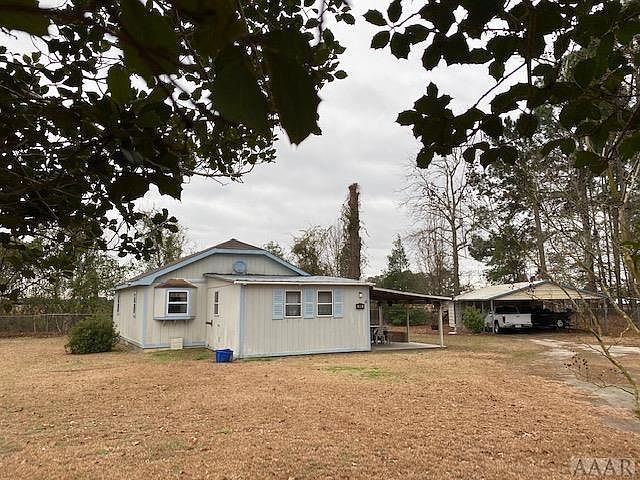This cottage is one to see! Offered at only $59,000 features a large fenced yard w additional wooded lots to expand. Double carport w storage room & additional storage building too. Covered patio offers great outdoor living space. Enter thru the attached storage room; it is perfect space for a workshop, potting shed or workout room (washer/dryer hookup & water heater are located here). Just the right amount of space in the eat-in kitchen w walk-in pantry, living room w access to the back yard. Two bedrooms (one adjoins the bathroom). Neighborhood beach & boat ramp on the Chowan River.