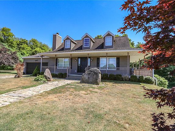 Country living at it's finest on this 14 acre Equestrian mini estate or your very own Farmette! Enjoy 360 degree views of lush landscapes & pastures backdropped by trees & wildlife galore. Charming 3 bedroom & 3 full bath home has neutral color tones, freshly painted accompanied by new carpet throughout most of home.The wrap around porch offers stunning sunsets & countryside views from every angle.LivingRm is the hub of the home offering updated stone wood burning fireplace & is open to kitchen area.Eat-in Kitchen & diningRm combo w/sliding glass door that leads to amazing spacious deck offering plenty of additional entertaining space & lovely gazebo.Convenient 1st floor master bedrm!Upper level has 2 additional bedrms & full bath rm.Lower level walk out FamilyRm is versatile to suit your family needs & is plumbed for a wet bar.Huge pole barn is an added bonus!Use for storage, horse stables,& more!55Min to Pitts &50 min to Airport!Enjoy owning your very own slice of country paradise!
