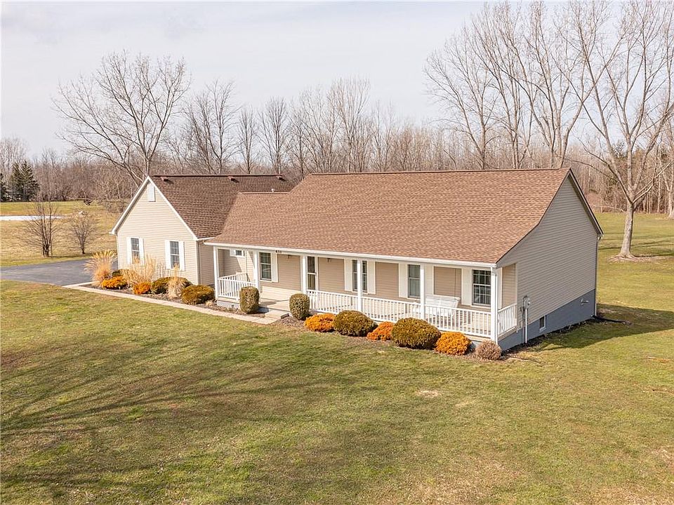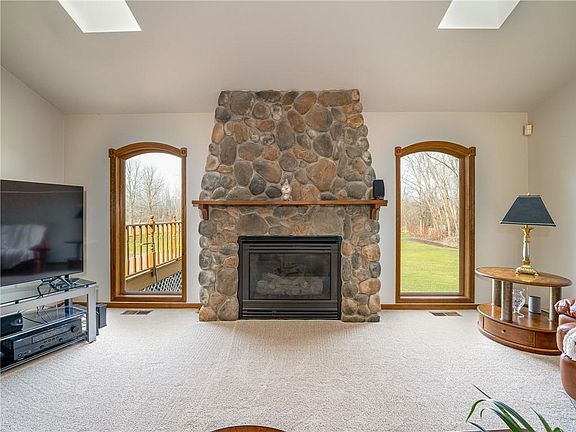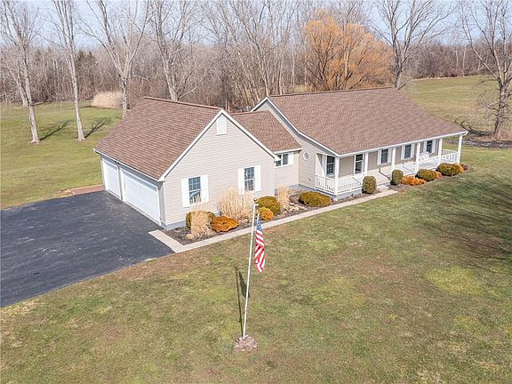 ACERAGE & MORE: Simply Stunning Contemporary Ranch, nestled in 10+ acres of pristine countryside, and woodlands. Located in Hilton, NY this property offers 3 nicely sized beds/ 2 full baths. The owner suite offers a spa-like bath w/ deep jetted tub, separate shower/ double sinks & private linen closet. Step into the foyer and be delighted. Bathed in Natural Light, the expansive family room, features a Stone fireplace, architectural windows, and a soaring ceiling with skylights. Serve family and friends in the formal dining room, with custom French pocket doors. The kitchen is highlighted with an island, & plenty of cupboard and counter space. First floor laundry, 3 car attached garage and more. Relax on the back deck and enjoy nature's vista. The walk out 12 course basement is spotless, and perfect for finishing. This home has been lovingly & meticulously maintained. Move in, that is all.