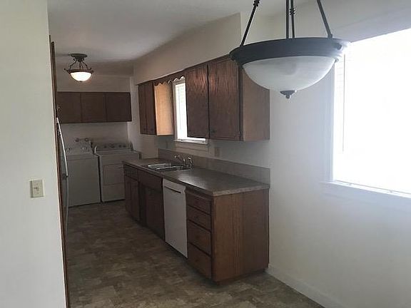New refrigerator, stove used 1 year, includes dishwasher, washer and dryer. Freshly painted inside. Garage, full unfinished basement. First and last month plus deposit. Owner pays for water and garbage, tenant pays for electric and gas