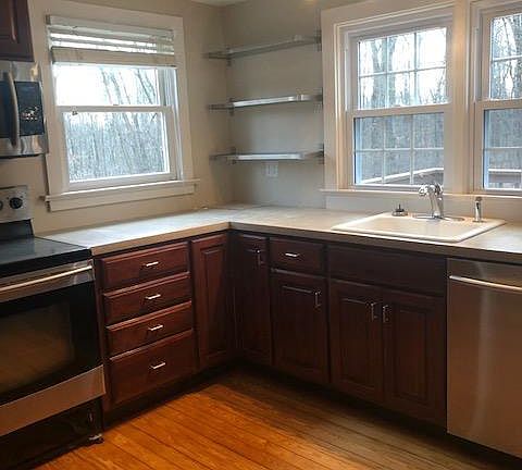 Welcome to 410 N Broad St. A charming carriage home tucked away at the back of the estate. Up a flight of freshly refinished hardwood stairs is this charming home. There is a large LR with a wood burning fireplace. Around the corner is a large DR with chandelier and outside entrance to the rear deck. The freshly updated kitchen is sure to please with cherry cabinets, stainless steel accents and SS appliances too. The home has 2 bedrooms and a brand new bathroom. The whole main level has freshly redone hardwood floors. Fresh paint throughout. Clean, clean clean! Move right in. Downstairs is a nice sized laundry room with a storage area. Call today for your appointment to see this awesome property. 2021-01-13