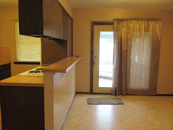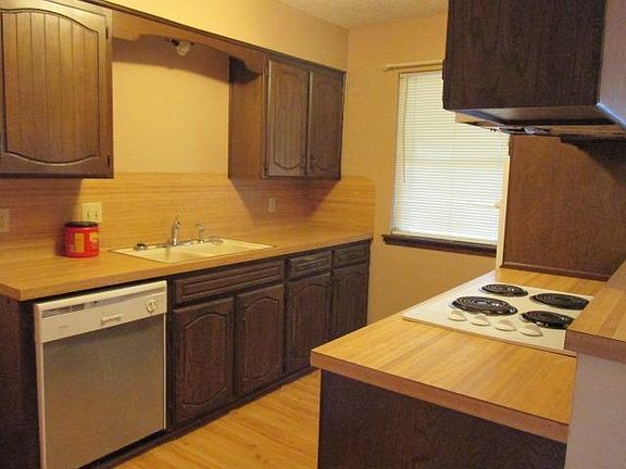 Three bedrooms, 2 baths . Master bath and walk in closet. Covered porch. LARGE 2-CAR GARAGE Stove, oven, and dishwasher. Large utility room. Great home - way bigger than it looks from outside One year lease required. $40 (non refundable) application fee, $650 deposit. NO PETS. 1 year lease, no pets. $40 Application fee.
