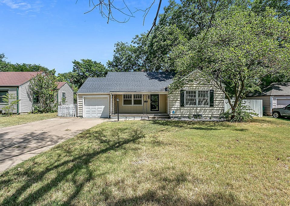 Great starter home near Crown Heights! Make 410 N Edgemoor your new home and enjoy a well updated home in a great location. The covered front porch welcomes you into large living room with hardwood floors and great natural light. Open concept plan features flexible dining room space and a wonderful east facing sunroom over looking the fully fenced backyard. Kitchen is sure to impress with granite counter tops, stainless steel appliances, subway tile backsplash and lots of cabinetry. Two generous sized bedrooms, one with a walk in closet, also have hardwood floors and share a very well updated bathroom with brand new flooring. Don't miss the covered wrap around deck out back, double wide driveway, attached garage with opener and 1 year old HVAC. Home comes with a one year American Home Shield Warranty. New home owner will have immediate equity potential by finishing the basement. Schedule your showing today before this amazing opportunity is gone! Seller is a licensed agent in the state of Kansas.