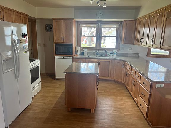 4 Bedroom 2 Bath 1 1/2 story home. The home offers a large eat in kitchen with a center island, granite counter tops and a seperate dining area. The living room has a wood burning fire place. The re are two bedrooms and a 3/4 bath on the main floor and 2 bedrooms with a 1/2 bath on the upper level. Enjoy the family room in the basement along with a large laundry area and an abundance of additional storage. Store all of the toys in the single stall attached garage and double stall detached garage with back alley entrance.
