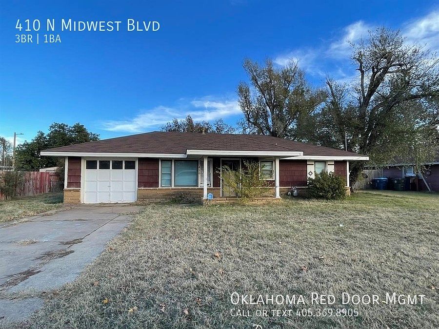 This 864 square foot single family home has 3 bedrooms and 1.0 bathrooms. This home is located at 410 N Midwest Blvd, Midwest City, OK 73110.