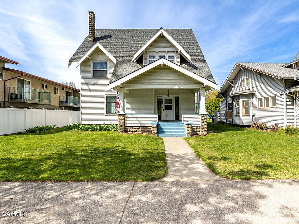 An early American craftsman home right on the north Naches Ave parkway! Classic front porch enjoys a view of the parkway. Large entry with built in bench, and original woodwork. Living room with fireplace, and a large dining room with period detail. Unfinished basement with laundry. 4 large bedrooms upstairs with hallway storage built ins. Fenced backyard with alley access. Brand new gas FA furnace.B-1 zoning would allow for an in-home business option. Only 3 blocks north of Single Hill Brewing, The Seasons Performance Hall and the YMCA. Miller park is just to the north. Shown by appointment only.